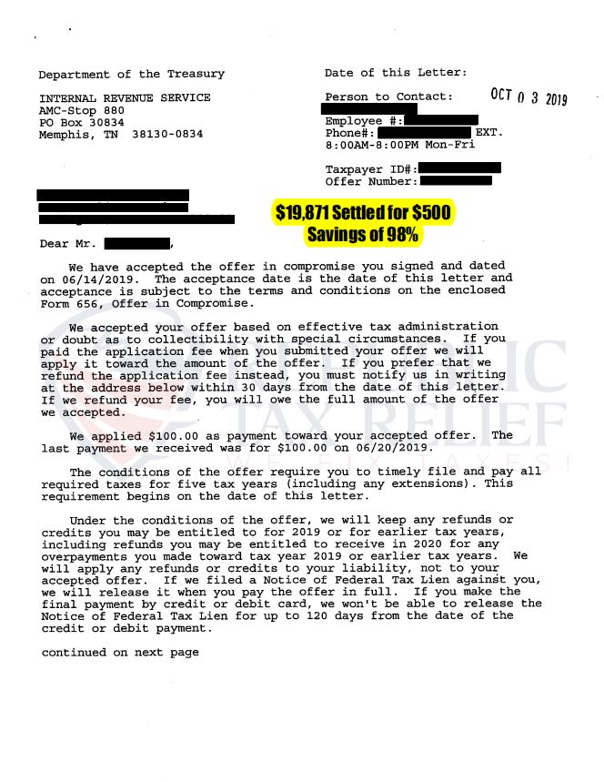 We have helped over 60,000 clients, and resolved over $500 million in tax debt, and we’re ready to help you!